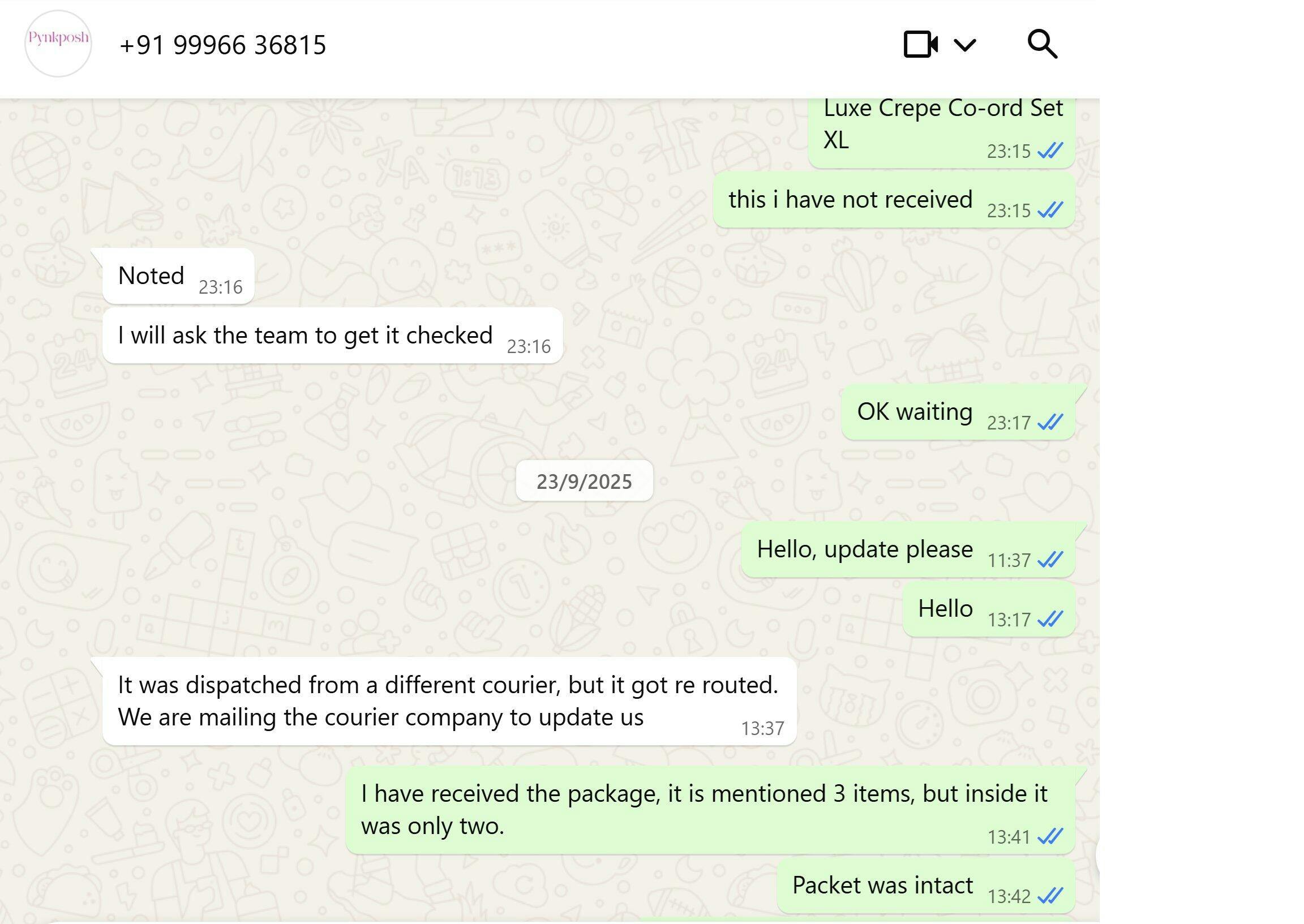 Call us on 9996636815 or mail us at care@thepynkposh.com